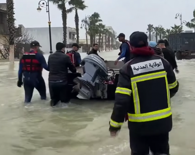 À Ksar El Kébir, une intense mobilisation des engins et des camions lourds, capables de circuler dans les rues inondées, est observée, tandis que les embarcations de la Protection civile multiplient les rotations pour évacuer le plus grand nombre possible de citoyens piégés par les eaux dans les quartiers touchés.