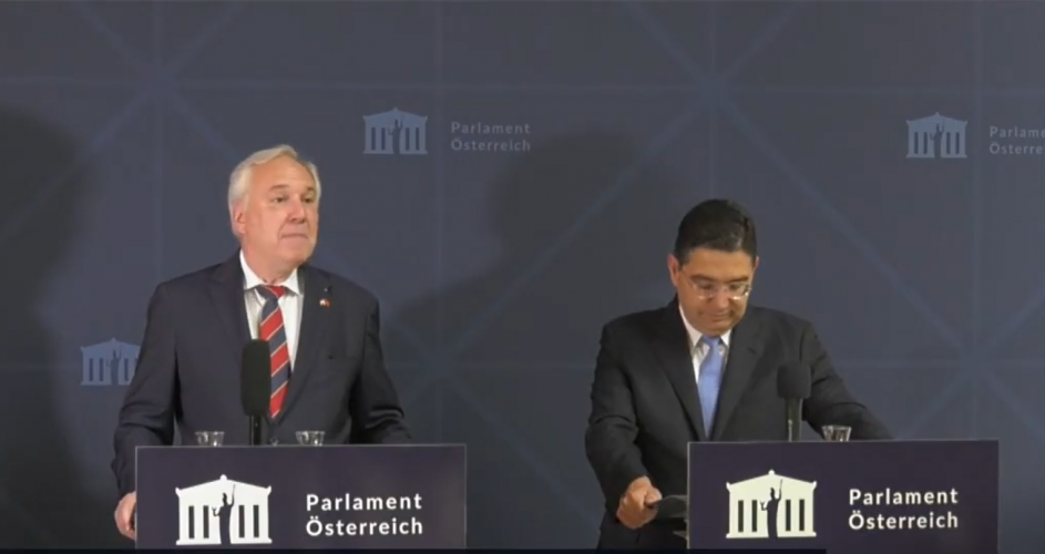 M. Bourita, qui effectue une visite de travail en Autriche à l’invitation de la ministre fédérale des Affaires européennes et internationales, Beate Meinl-Reisinger, a également mis en avant la qualité de la coopération entre les deux pays, notamment dans les domaines sécuritaire, consulaire, ainsi que dans la lutte contre les réseaux de traite des êtres humains et la criminalité organisée. Il a par ailleurs rappelé que les relations entre le Royaume du Maroc et la République d’Autriche vieilles de plus de 240 ans, soulignant que cette dynamique se poursuit de manière constante et contribue à faire face aux défis internationaux des dernières années.
